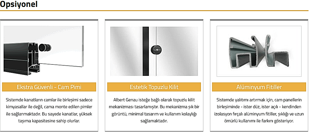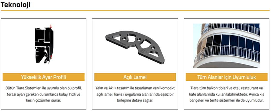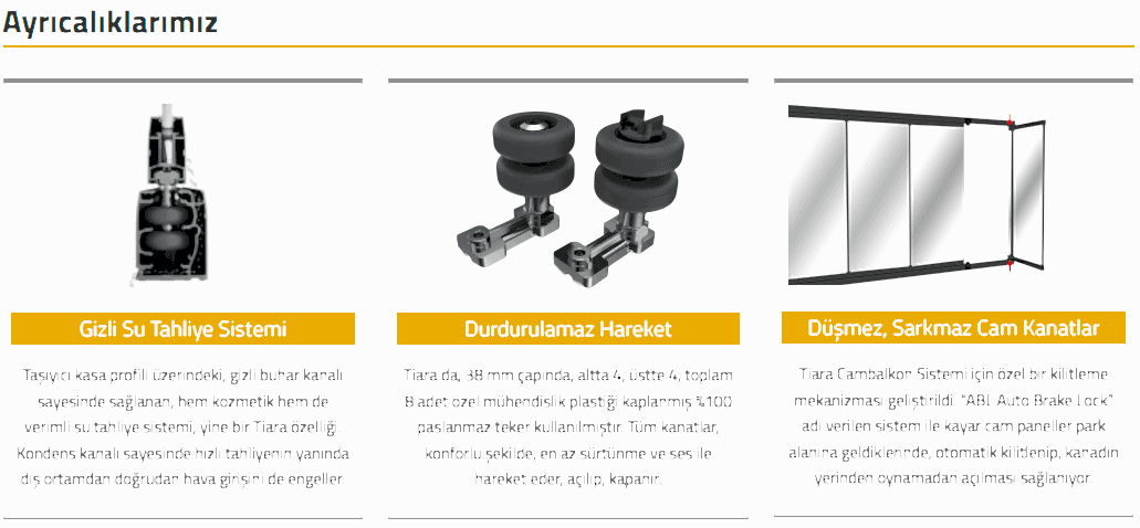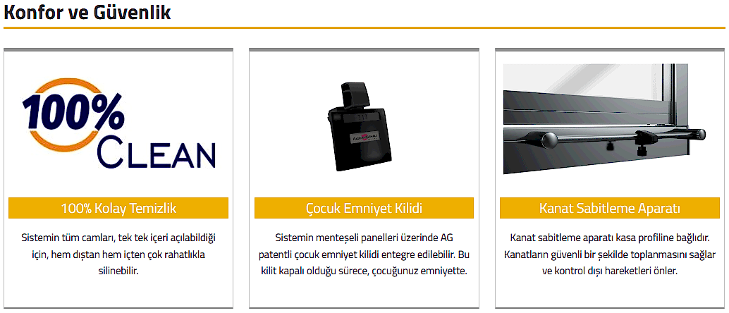Tiaraile yeni yaşam alanınızın keyfine varın. Maksimum genişliğe kadar kanat yapısına izin veren bu sistem, eşsiz bir panoramik görüntü imkanı sunuyor. Sistemin menteşeli panelleri üzerine entegre edilen çocuk kilidi sayesinde, çocuğunuz emniyette.